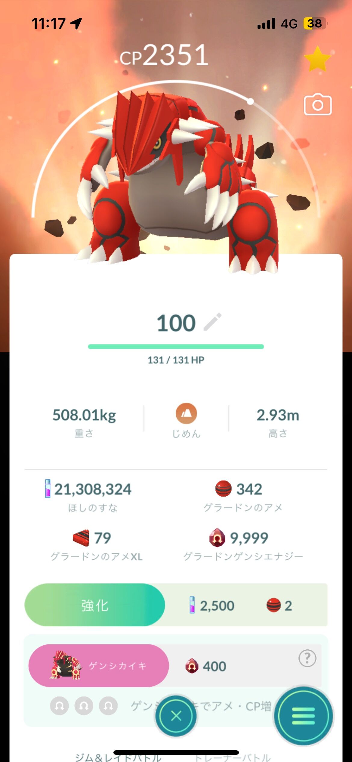 カイオーガの100でまっすように