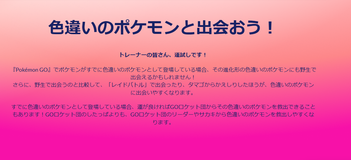【ポケモンGO】色違いポケモン、いくつか出現条件が変更、ロケ団下っ端でも開放