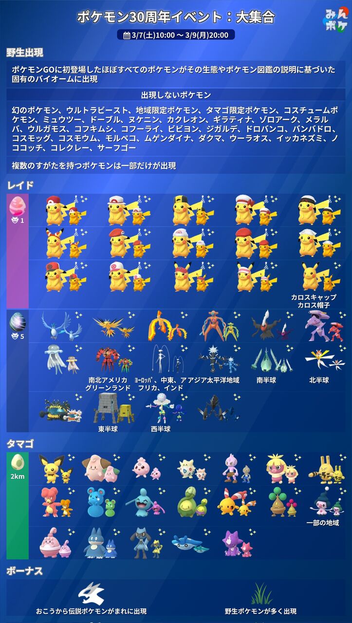 【ポケモンGO】ポケモン30周年イベント:大集合【2026年3月7日10:00から2026年3月9日20:00】